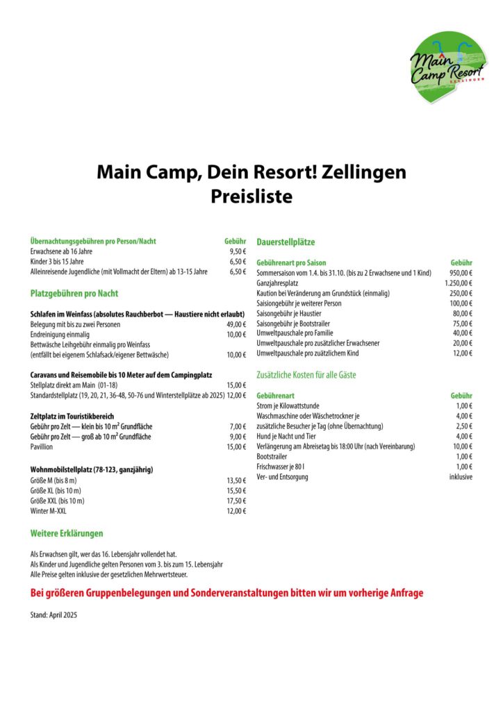 Pauschale pro Fass (entfällt z.B. bei eigenem Schlafsack oder mitgebrachter Bettwäsche)